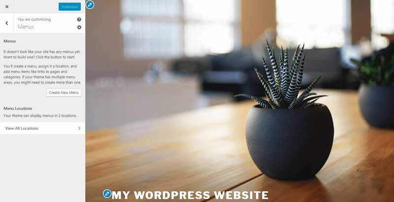 Once you’ve made a navigational plan or sitemap, you’re ready to create your menus. Within WordPress, navigate to Appearance > Customize, then click on Menus: