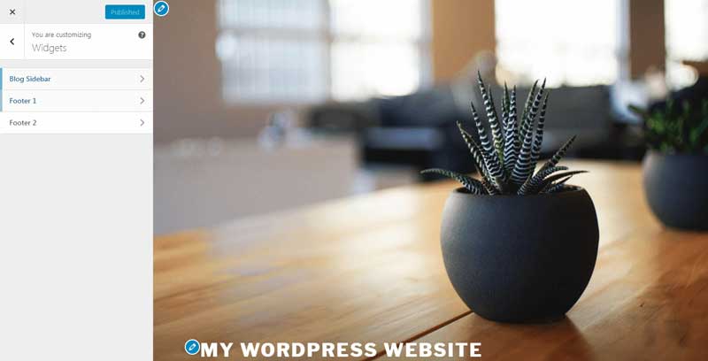 If you’d like to include additional menus elsewhere on your site (within your footer, for example), you can use WordPress’ menu widgets to get the job done. To add menus to these areas, you’ll need to return to Appearance > Customize in WordPress. This time, you’ll want to visit the Widgets section: