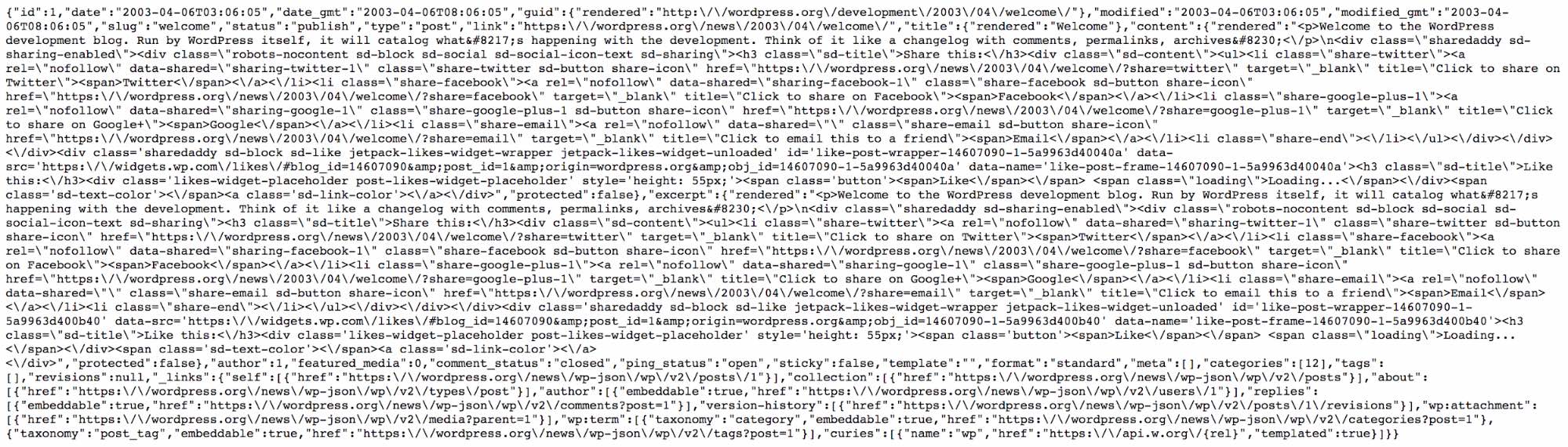 curl https://wordpress.org/news/wp-json/wp/v2/posts/1